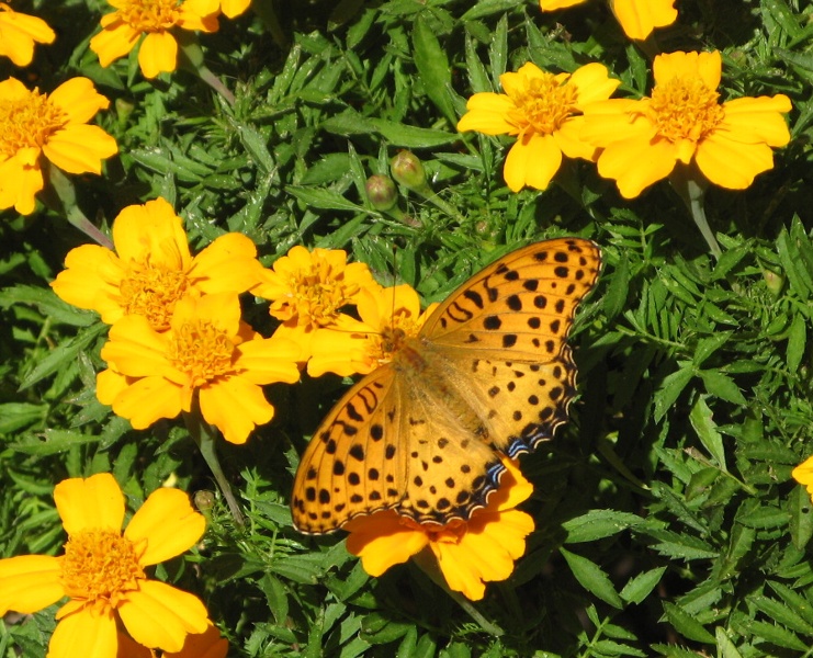 1・マリーゴールド満開。チョウなどがあつまります。