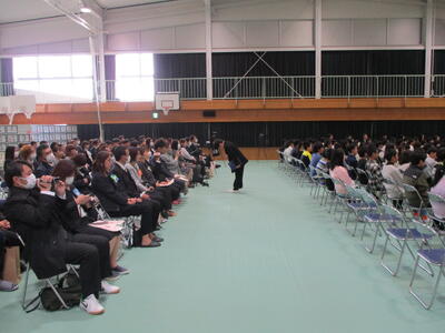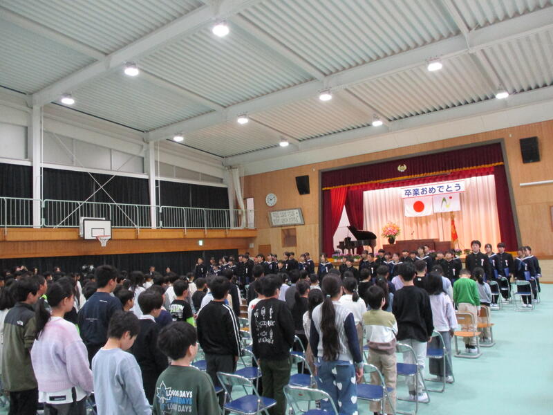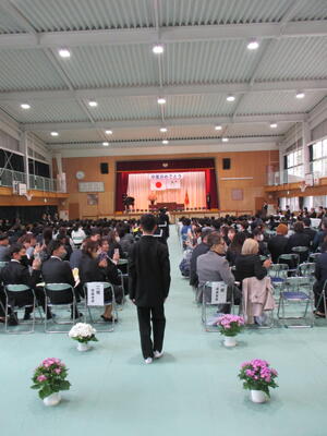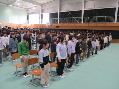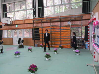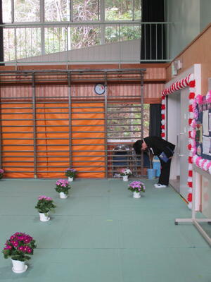 午後、4、5年生が卒業式場づくりをしました。飾り付けをしたり清掃したりして、明日の卒業式が6年生にとっての思い出となるよう心を込めて作業をしました。