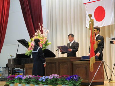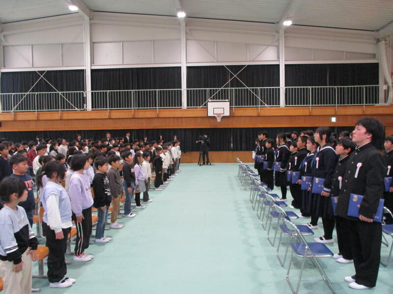 1~5年生の子供たちが、好きな歌の歌詞から6年生に向けてコメントを贈っていました。