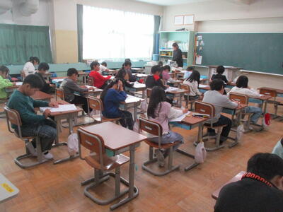 3年生 算数科 テストをしました。今日から転入生が1名入って、みんなさらに元気です。
