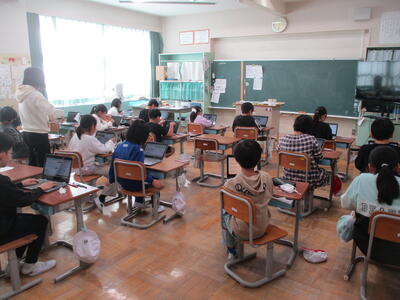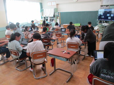 4年2組 総合的な学習の時間 まとめのプレゼンテーション作りをしています。