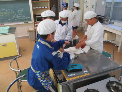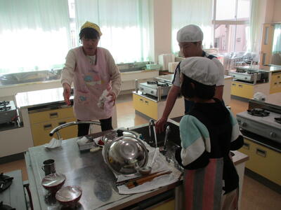 5年生 家庭科 調理実習で「お味噌汁」づくりをしました。画像は、後片付けの様子です。