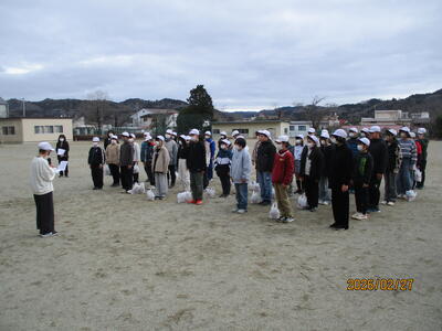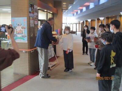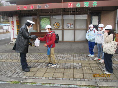 これは、地域と共に歩む本校が、多くの地域の皆様に見守られ助けられていることに、感謝の気持ちを伝えるため行っている行事です。昨日は、地元の老人会の皆さんで下校の見守りをしてくださっている“見守り隊”の皆さんにプレゼントしました。