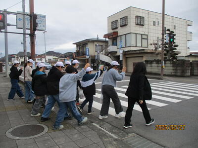 まる見守り隊の皆さんに見守られながら下校しました