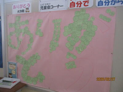 花丸職員室廊下にある児童会企画「ありがとう大作戦」も「あ・り・が・と」まで進んできました。