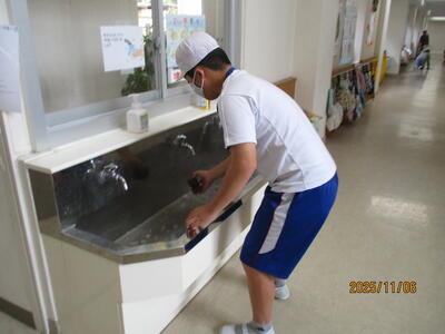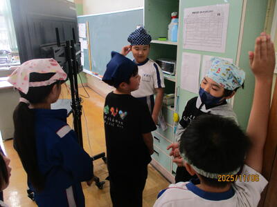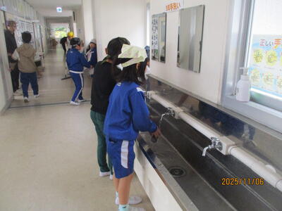 5年生 家庭科 調理実習で「お味噌汁」づくりをしました。画像は、後片付けの様子です。