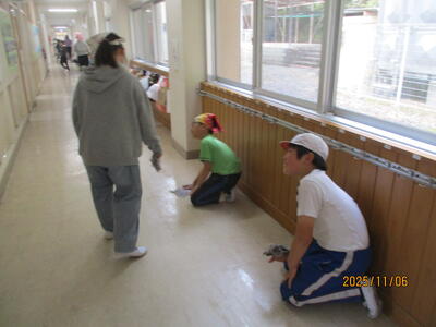 今日から11月、12月の新清掃分担に変わりました。清掃班ごとに新分担区に移動して、役割分担をしてから始めました。新鮮な感覚で一生懸命に清掃に励んでいました。