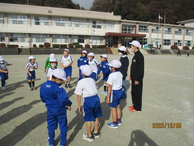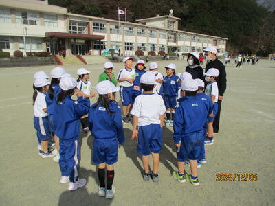午前中は、大学の先生などの専門家と、町スポーツ推進員の皆さんにお越しいただいて、体力向上のため「タグラグビー」を行いました。