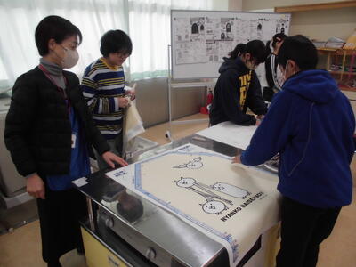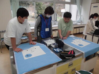 家庭科の授業では、テーブルに分かれて、指導と支援をしてくださいました。とても助かりました。ボランティアのみなさん。本当にありがとうございました。