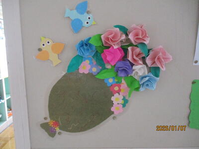 花丸5組教室の後方に作品バッグが準備してありました。2学期の作品を持ち帰りします。