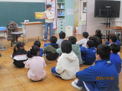 町の読み聞かせボランティア「たまご」さんの読み聞かせをしていただきました。3・4・5・6組の皆さんは、「たまご」さんの読み聞かせをよく聞いて、お話しを楽しんでいました。