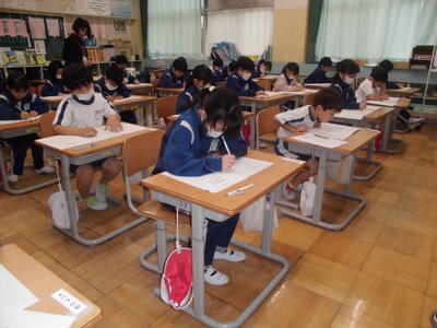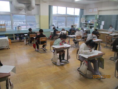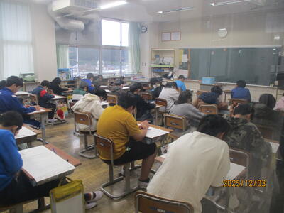 2、3時間目に、全学年で「町学力調査」として、国語と算数の学力テストをしました。