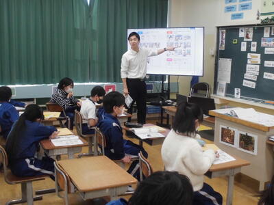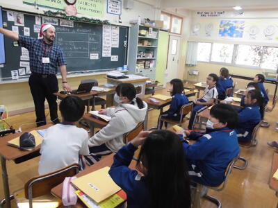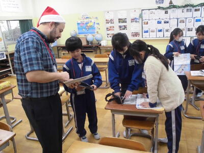 3年生教室では、昼休みに図画工作科の授業でつくったクリスマスツリーの仕上げをしていました。道具をシェアして、きれいでかわいらしいクリスマスツリーを仕上げていました。教え合ったり助け合ったりする姿がすてきで、心地よい雰囲気でした。