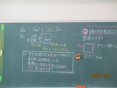 4年1組 算数科 図形の面積のグラフを見て、調べ方を考えました。
