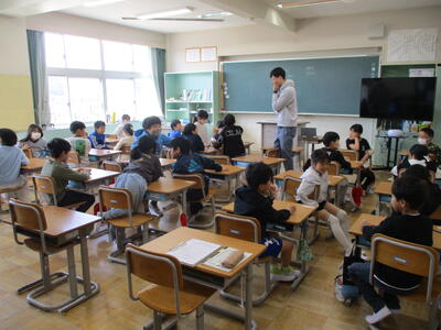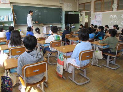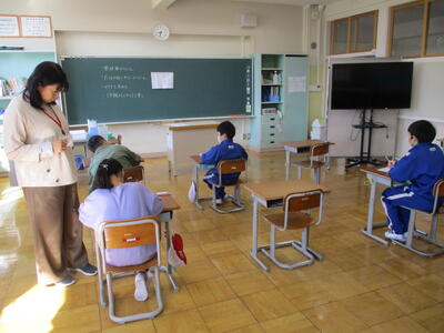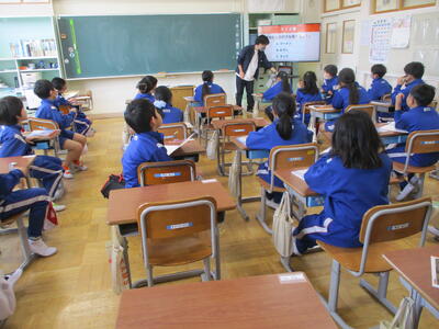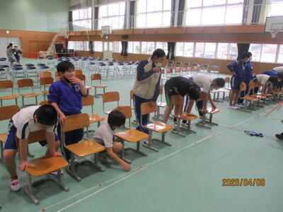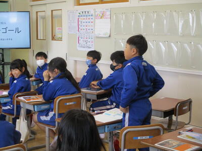 学習指導主任の先生から、授業のあいさつの仕方の確認をしました。5年生のみなさんがお手本を示してくれました。