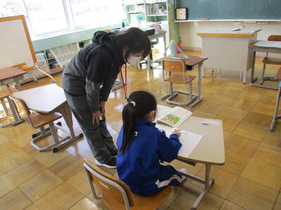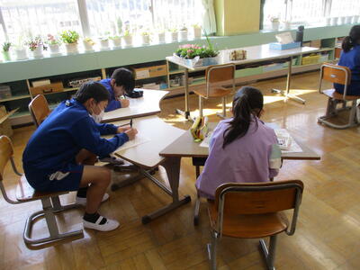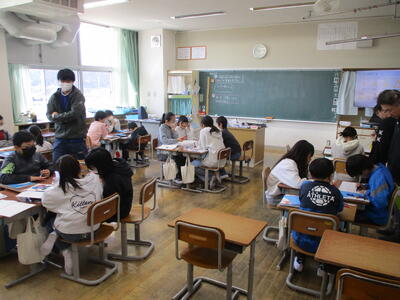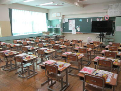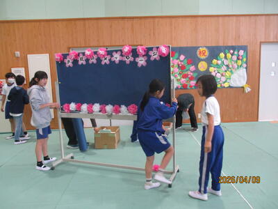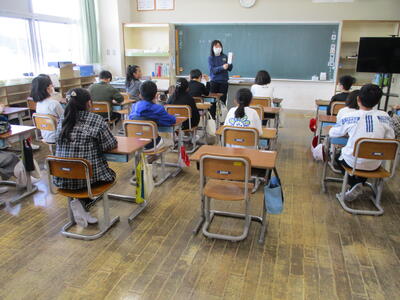 始業式の後、新たな担任の先生とともに学級開きをしました。自己紹介したり、教科書を受け取って名前を書いたりしながら、新しい学年の目標を立てていました。