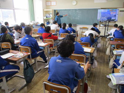 学力向上推進リーダーの説明 県教育委員会の取組みや授業の改善の視点を伝えてくれました。