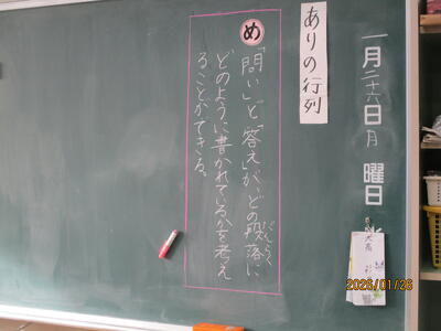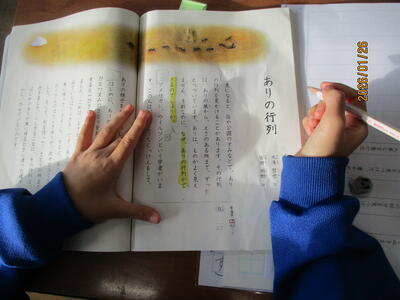 3年生 国語科 「ありの行列」を読んで、「問い」「答え」を正しく見つけ出す学習をしました。