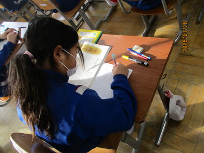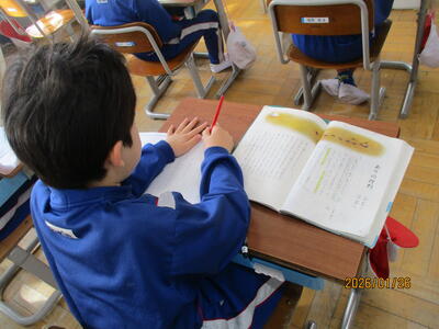 1年生 国語科 テストをしました。よく問題文を読んで、間違わないようにがんばっていました。