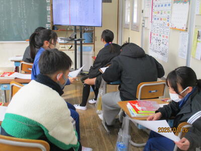 3年生 外国語 外国語の授業は、最終回が近づいてきています。1年間の総まとめをしていました。
