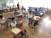 生活科の校外学習で給食センターと馬頭図書館に見学に行きました。