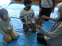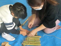 次に、竹の打楽器を親子で作りました。