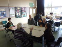 その学習の一環として、「えにし苑」さんを訪問し、高齢者の皆さんと交流しました。