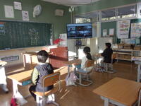 モニター越しに校長先生の話を聞く子ども達の姿勢は