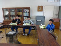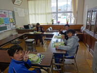 などいろいろなことを話しながら、給食を食べました。