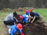 そして、ボランティアの方からさつまいもの上手な掘り方を教えてもらいました。