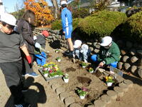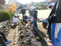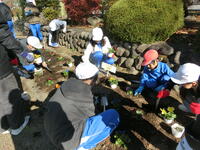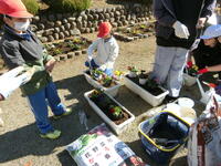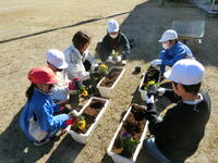 花壇に植えた後、次はプランターに、最後は一人一鉢にパンジーの花を植えました。