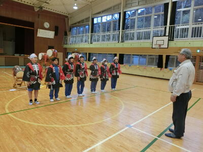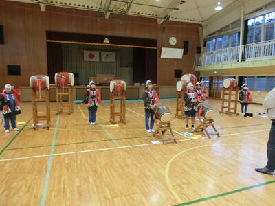 講師の先生を招いて、5年生が太鼓の練習をしました。