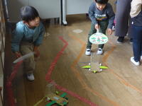 次に2年生が、生活科でそれぞれ工夫して作った動くおもちゃで一緒に遊びました。