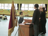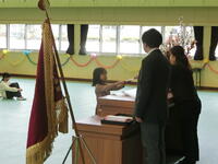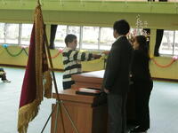 修了式では代表児童が修了証、進級祝証をいただきました。