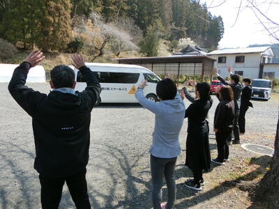 帰りのバスの見送りでは、みんな元気に手を振って帰っていきました。