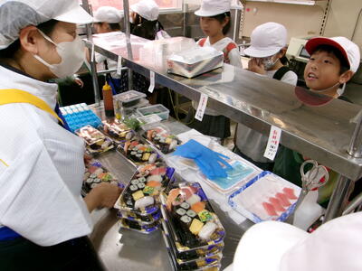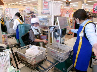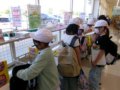 お店では、児童にわかりやすく丁寧に説明していただき、お客さんが買い物をしやすくしたり、楽しく買い物できるようにしたりする工夫について学んできました。