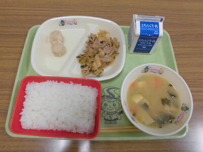 今日は、馬頭高校で「野菜」を選択しているみなさんが育てた白菜が入った豚汁です。