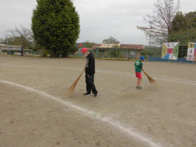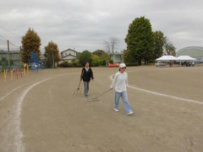 校庭をならしたり、石を拾ったりとよく働きました。5・6年生の皆さんありがとうございました。明日の運動会が楽しみです。