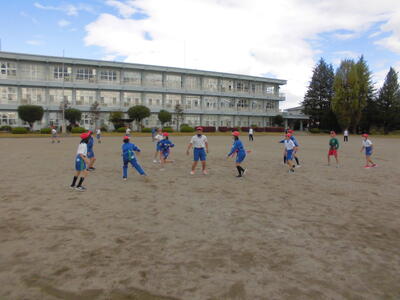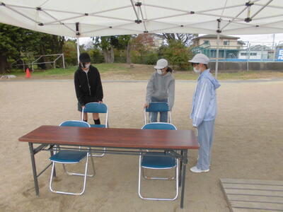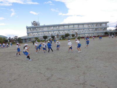 5校時、5・6年生が明日の運動会の準備を行いました。