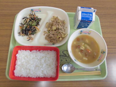 今日は、マッシュルームやたもぎたけの入ったハヤシシチューをごはんにかけて食べてください。