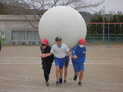 今日は、全校児童で行う種目「オガワニのたまご」(大玉運び)の練習をしました。