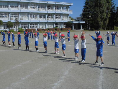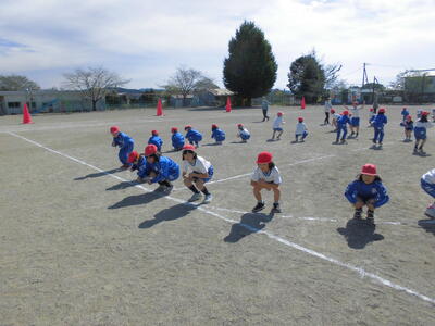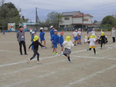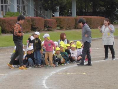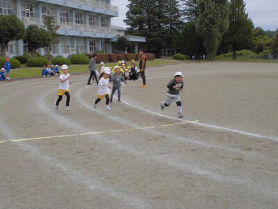 こども園の年長組の皆さんが、小川小学校を訪問しました。本校の運動会で、来年度入学生の徒競走があります。今日はその練習をしました。