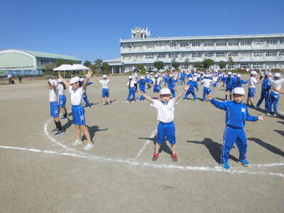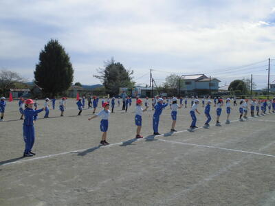 2校時は全校児童で入場行進の練習をしました。並び順や間隔、歩く速さなどを確認しました。