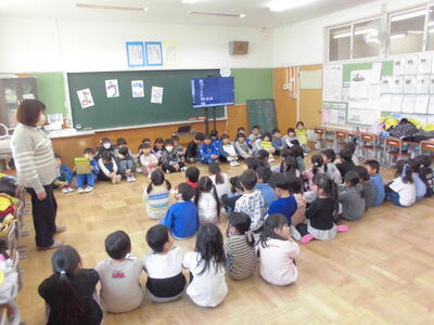 前半の1時間は小学校の紹介をし、後半の1時間は校内を案内しました。