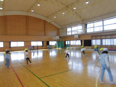 体育館は広いので、走りたくなります。