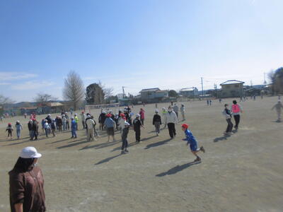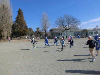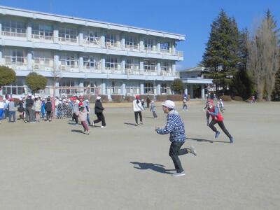 全校児童が校庭を走り回り、楽しく体力づくりもできました。