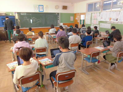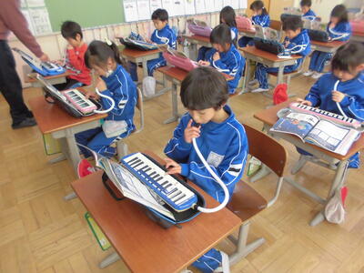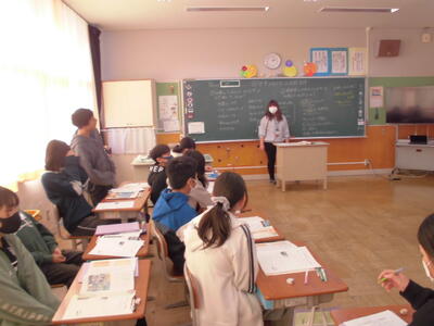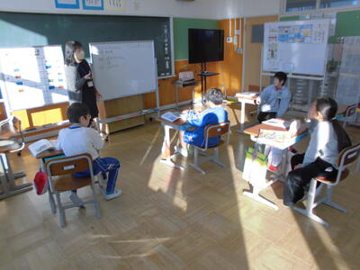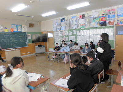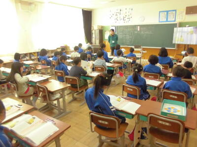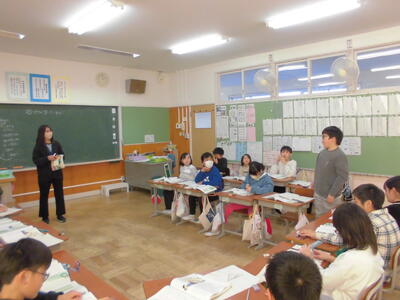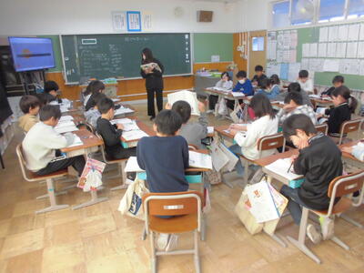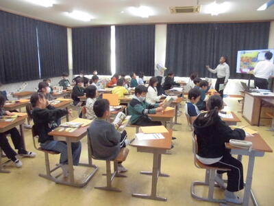 教室では、太鼓の体験に多くの時間を割いてくださり、児童は楽しく参加することができました。