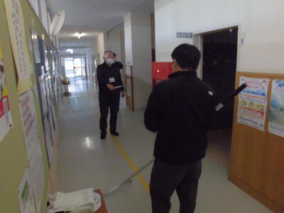 小学5年生から中学3年生までの縦割り班で校内を回り、ジェスチャークイズやボウリングなどのミニゲームを行いました。
