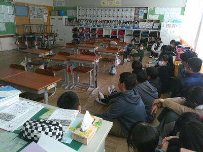 6年生の保護者の皆さんは、親子活動後、町生涯学習課による「親学習」に参加しました。