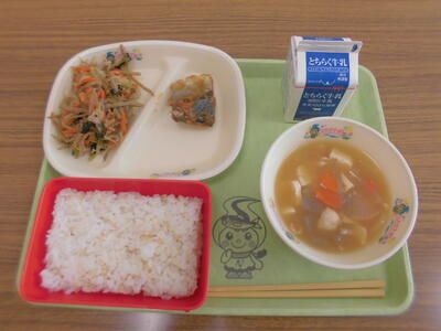 麦ごはん 牛乳 子持ちシシャモフライ・中濃ソース キャベツのそぼろ炒め どさんこ汁